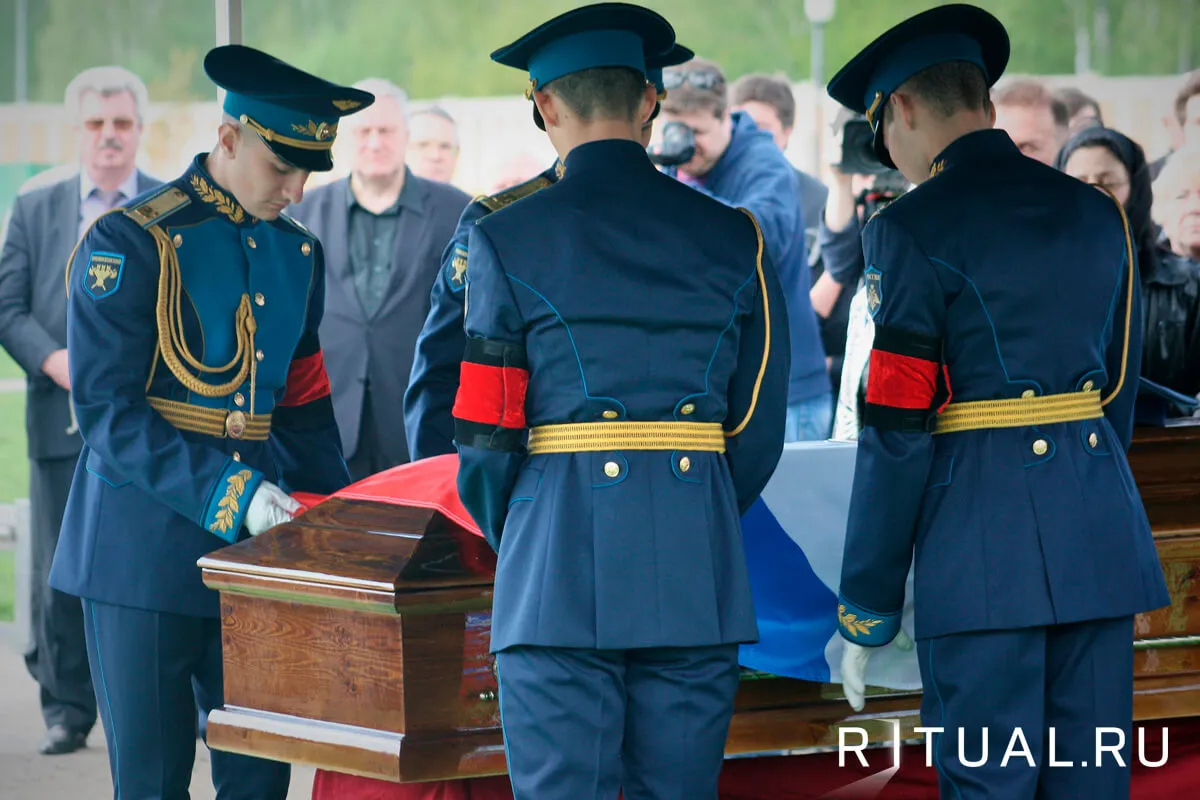 Похороны и церемония прощания организовали Минобороны РФ совместно с городской ритуальной службой «Ритуал-Сервис» (Ritual.ru), уполномоченной осуществлять погребение граждан с заслугами перед страной на ФВМК.