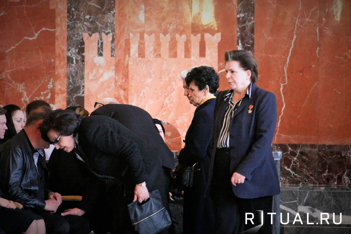 В главном пантеоне воинской и гражданской славы России с Виктором Горбатко простились родственники, друзья, коллеги по цеху космонавтов прошлых и нынешних времен, среди которых была первая женщина-космонавт Валентина Терешкова. Присутствовали представители Минобороны РФ и Роскосмоса, дочь конструктора Сергея Королева Наталья Королева.