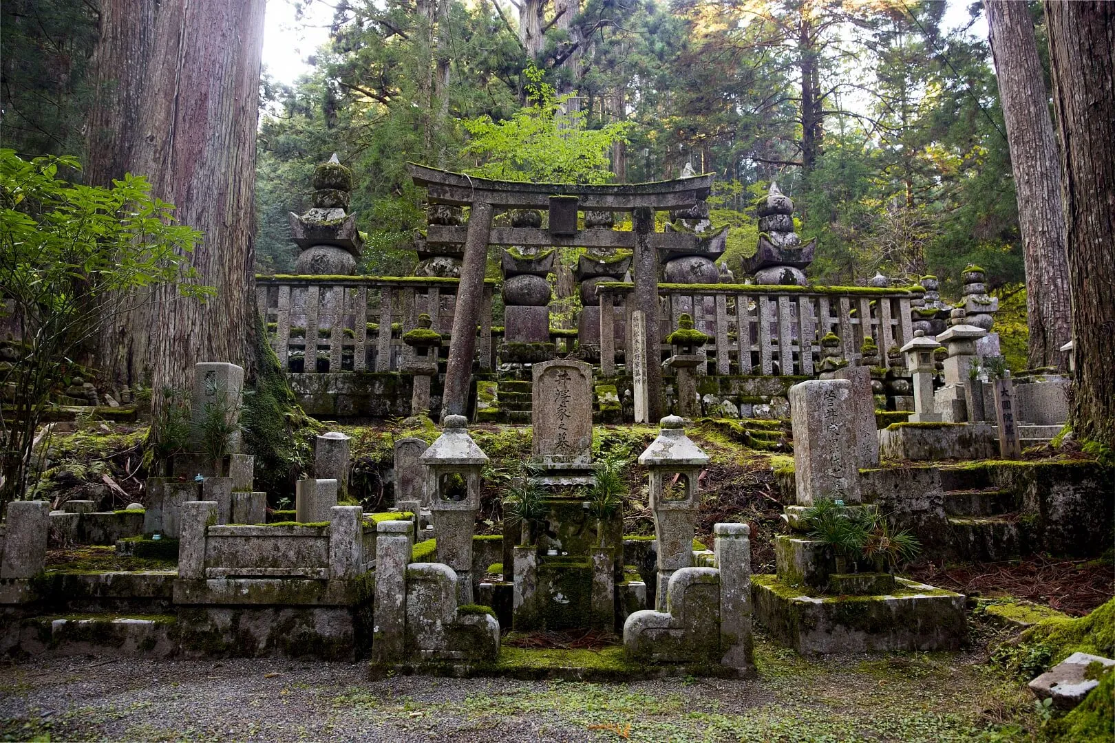 Японская культура издавна обращала особое внимание на сосуществование в гармонии с природой. Пример тому являет собой кладбище Окуноин, находящееся на горе Коя-сан, в префектуре Вакаяма. В отличие от арабских некрополей или открытых взору американских погостов, лесное кладбище Окуноин сумело вместить более 200 тысяч могил под сводами величественных кедров. Некоторые из надгробий покрыты мхом и по виду напоминают упавшие деревья, другие собраны вместе так плотно, что похожи на проросшие в овраге каменные грибы