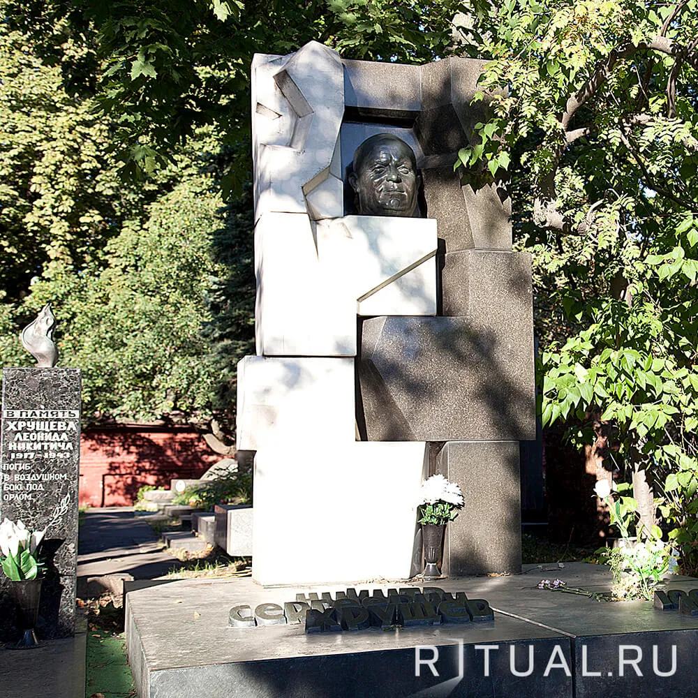 Надгробие Первого секретаря ЦК КПСС и Председателя Совета Министров СССР в 1958-1964 г.г. Никиты Сергеевича Хрущева подтверждает негласное правило, по которому у Кремлёвской стены не хоронили опальных государственных деятелей. Сложная политическая судьба советского руководителя символически отображена в сделанном по заказу сына Хрущёва надгробном памятнике работы Эрнста Неизвестного. Простецкое, вылепленное с максимальным портретным сходством, лицо Первого секретаря окружено, словно угловатым скафандром, белой и чёрной вертикальной композицией — верой в светлое коммунистическое будущее и тёмным наследием массовых репрессий.