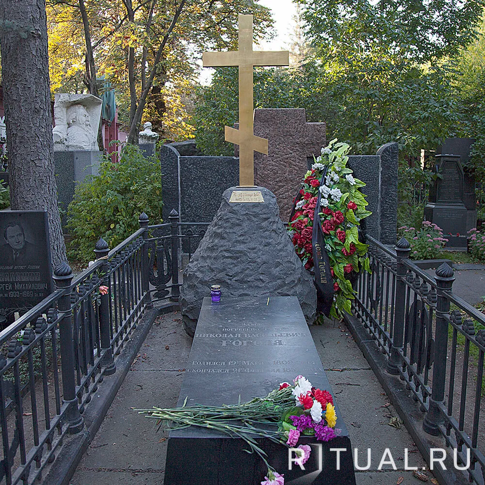 Великий классик Николай Гоголь был захоронен на Даниловском кладбище. В 1931 году, при ликвидации этого монастырского погоста в разгар борьбы с религией, прах писателя перенесли на Новодевичье кладбище. В 1952 году над новой могилой вместо прежнего креста с каменным подножием встал скульптурный памятник с надписью «Великому русскому художнику слова от правительства Советского Союза». В 2009 году надгробие вновь приобрело прежний вид: только камень и только крест.