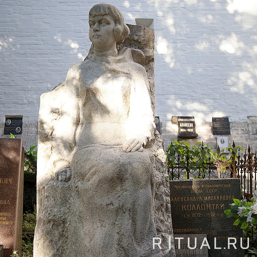 Могила Александры Коллонтай, русской революционерки дворянского происхождения, оформлена её скульптурным изображением. Коллонтай стала первой в мире женщиной-министром, затем полномочным представителем СССР в Мексике, Норвегии, Швеции, а в 1944-1945 г.г. — Чрезвычайным и полномочным послом СССР в Королевстве Швеция.