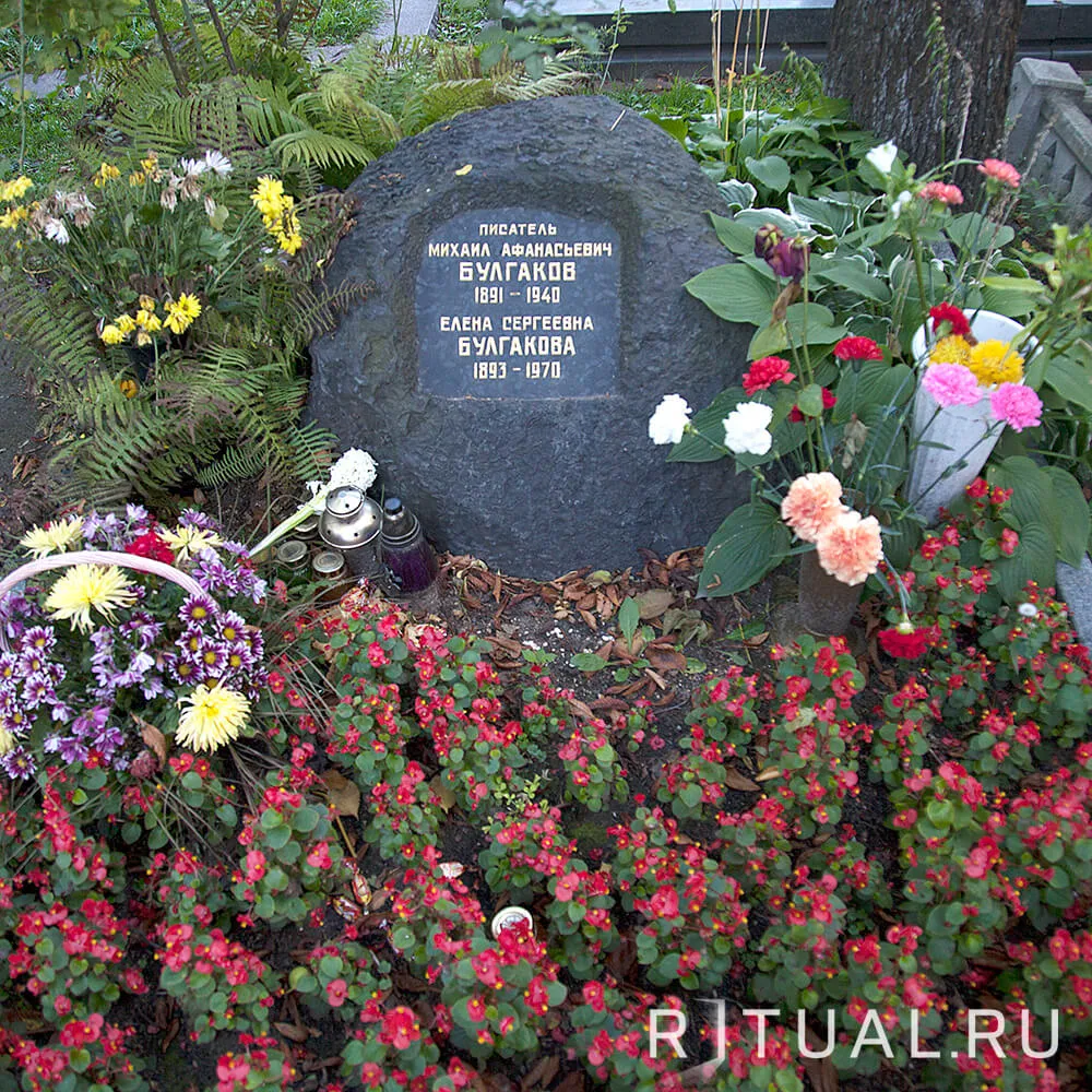 Находившийся на первоначальной могиле Гоголя особый чёрный камень с бугристой поверхностью, формой напоминающий Голгофу – место распятия Христа, установлен в качестве надгробного знака над захоронением другого мастера слова — Михаила Булгакова.