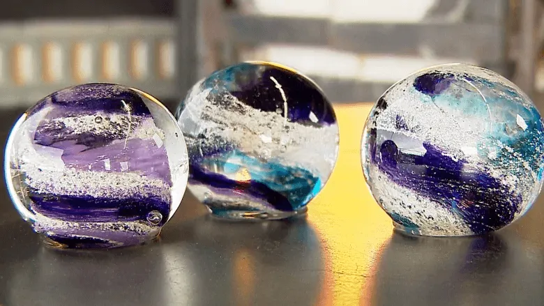 Передвижная студия Glass House Xperience курсирует по западной Канаде, создавая на основе стекла и кремированного праха умерших людей и животных настоящие произведения искусства. Получаемые в результате мемориальные стеклянные арт-объекты разнятся по цвету и форме – от небольших декоративных шаров или бусин до ваз.