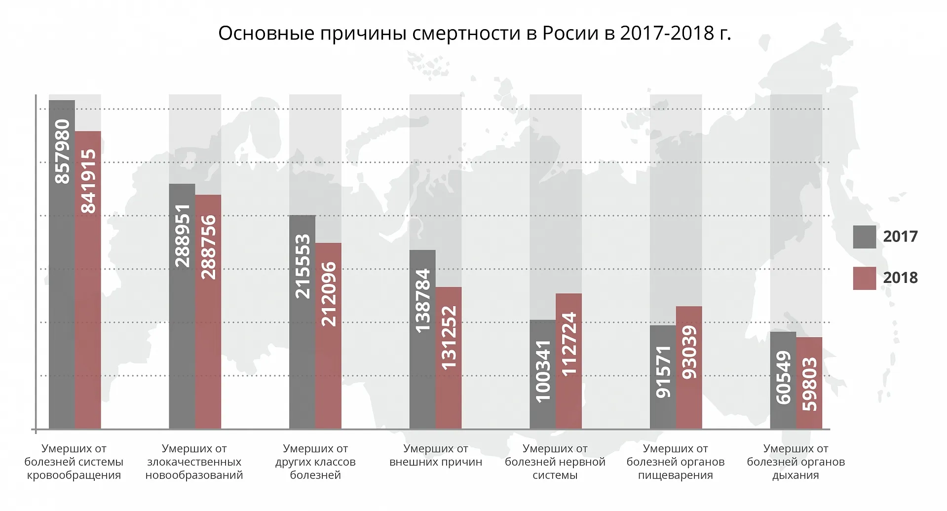 Сравнительная статистика за эти года позволяет оценить изменение причин смертности в Российской Федерации.