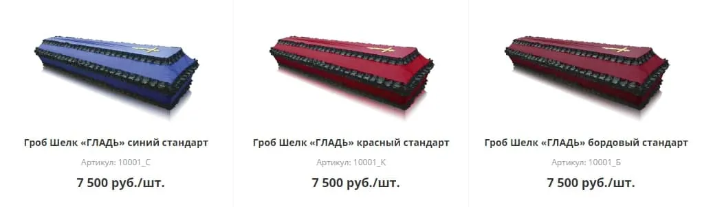 В целом, главные преимущества тканевых гробов для недорогих похорон – это демократические цены, быстрота изготовления и разнообразные виды обивки.