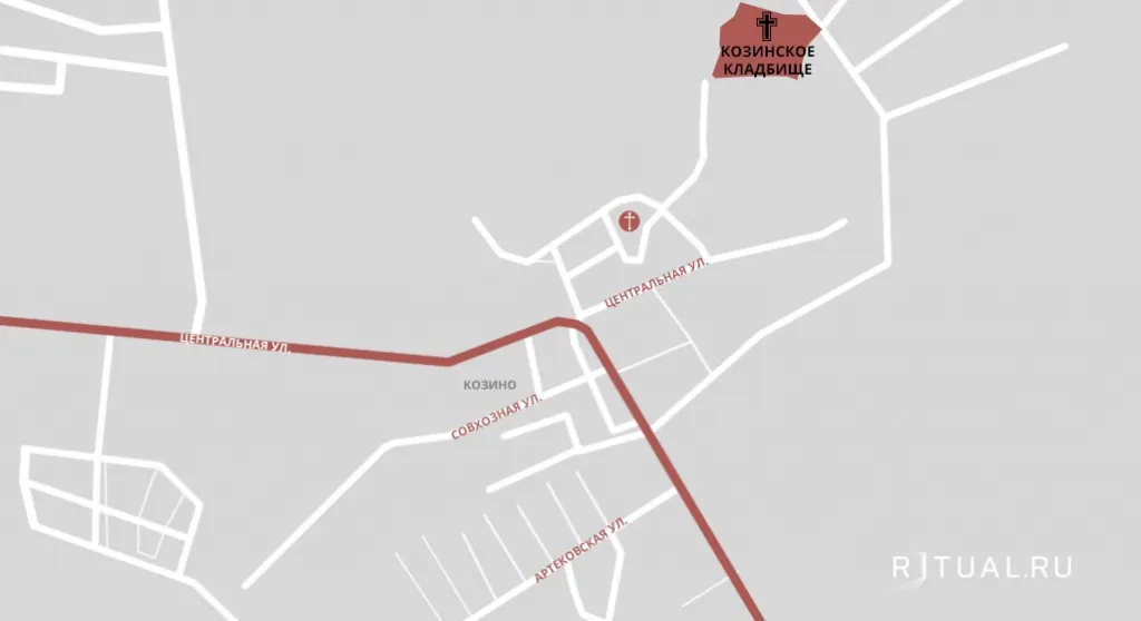 Тихое сельское кладбище в Подмосковье — Козинское размещено между Пятницким и Волоколамским шоссе. Рядом с территорией, которую занимает Козинское кладбище, действует новая, построенная в 2003 году деревянная церковь Иоанна Златоуста. Контролем деятельности, которую ведёт Козинское кладбище, занимается муниципалитет г. Красногорска.