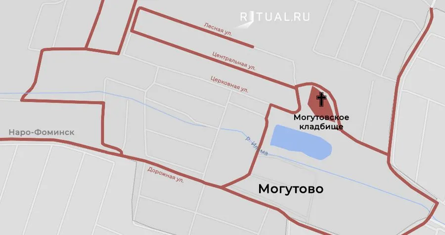 На метро выйти на ст. «Киевская», электричкой доехать до станции «Нара», на маршрутке № 20к проехать до «Могутово – магазин» (8 ост.) и пройти 500 метров к кладбищу.