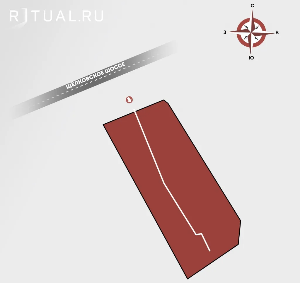 Выезд из Москвы по Щелковскому шоссе. Некрополь находится справа по ходу движения через 5,5 км от МКАД.