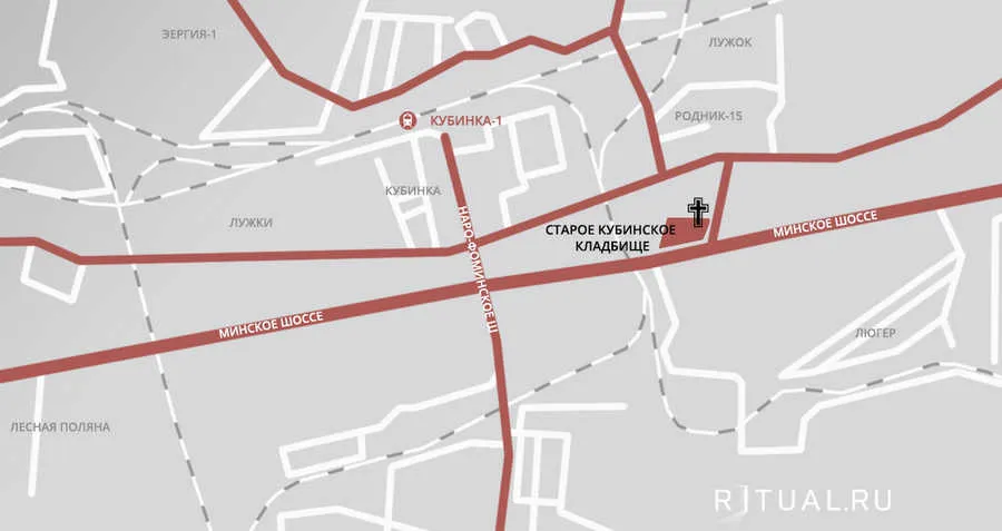 Частный транспорт до Старого Кубинского кладбища с Московской кольцевой едет по Минскому ш. 46,6 км до кладбища.