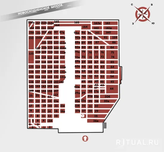 По МКАД: 1-й км по внешней стороне, выезд на Ленинградское шоссе, налево на Новосходненское шоссе, 700 метров до кладбища.