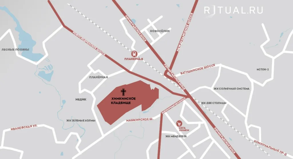 Адрес Химкинского кладбища: Москва, САО, Новосходненское шоссе, 1.