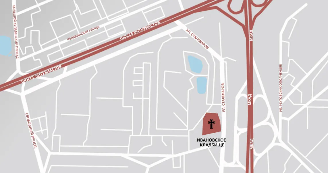Адрес Ивановского кладбища: Москва, Восточный АО, ул. Сталеваров, 6.