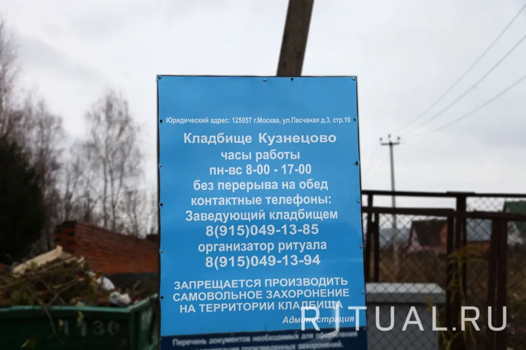 Городская ритуальная служба Ritual.ru поможет оформить родственное подзахоронение на кладбище Кузнецово. За консультацией обращайтесь по телефону круглосуточной городской информационной службы 8 (495) 100-3-100.
