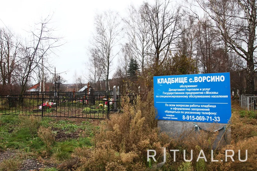 Городская ритуальная служба Ritual.ru поможет с оформлением родственного подзахоронения на кладбище Ворсино. За квалифицированной консультацией обращайтесь по телефону круглосуточной городской информационной службы 8 (495) 100-3-100.
