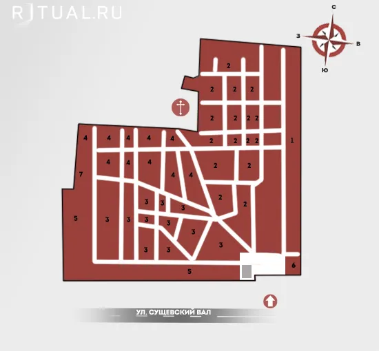 Двигайтесь по ул. Сущевский Вал от проспекта Мира в сторону Савеловского Вокзала. Перед Савеловской эстакадой поворот направо на Савеловский пр-д. Через 200 м поворот направо к входу в некрополь.