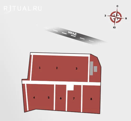 От ТТК: Съезд с ТТК на Проспект Мира в сторону МКАД. Поворот налево на ул. Летчика Бабушкина. Затем поворот налево на ул. Джамгаровская и 1 км прямо до территории некрополя. Время в пути – 20 минут.