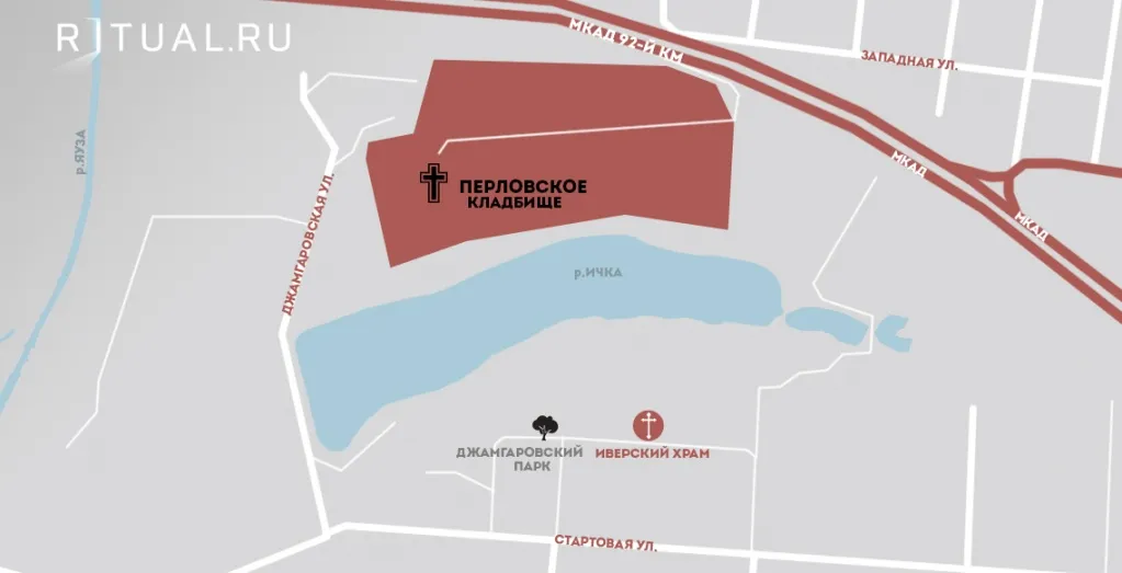 Адрес Перловского кладбища: г. Москва, СВАО, 92 километр Московской Кольцевой автодороги.