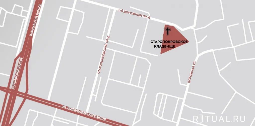 Адрес Старо-Покровского кладбища: Москва, ЮЗАО, Дорожная улица, 12.