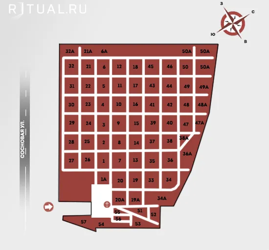 - Имеется колумбарий открытого типа (свободных ячеек нет).