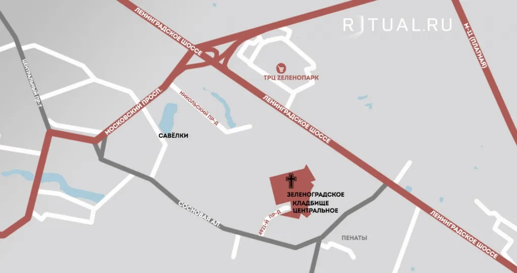 Адрес Зеленоградского кладбища: г. Зеленоград (ЗелАО), проезд 710, д. 19.