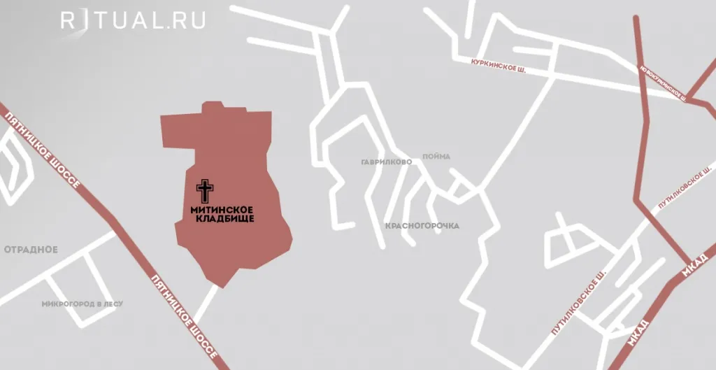Адрес колумбария Митинского кладбища: 6-й километр Пятницкого ш.