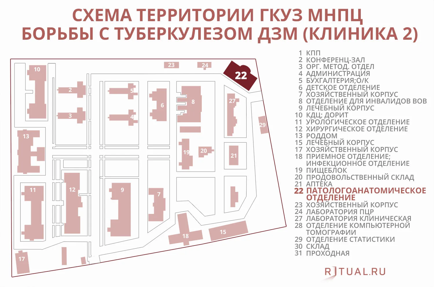 RITUAL.RU – ПОМОЩЬ В ОБСЛУЖИВАНИИ В МОРГЕ КЛИНИКИ № 2 МНПЦ БОРЬБЫ С ТУБЕРКУЛЁЗОМ ПО УТВЕРЖДЕННЫМ РАСЦЕНКАМ