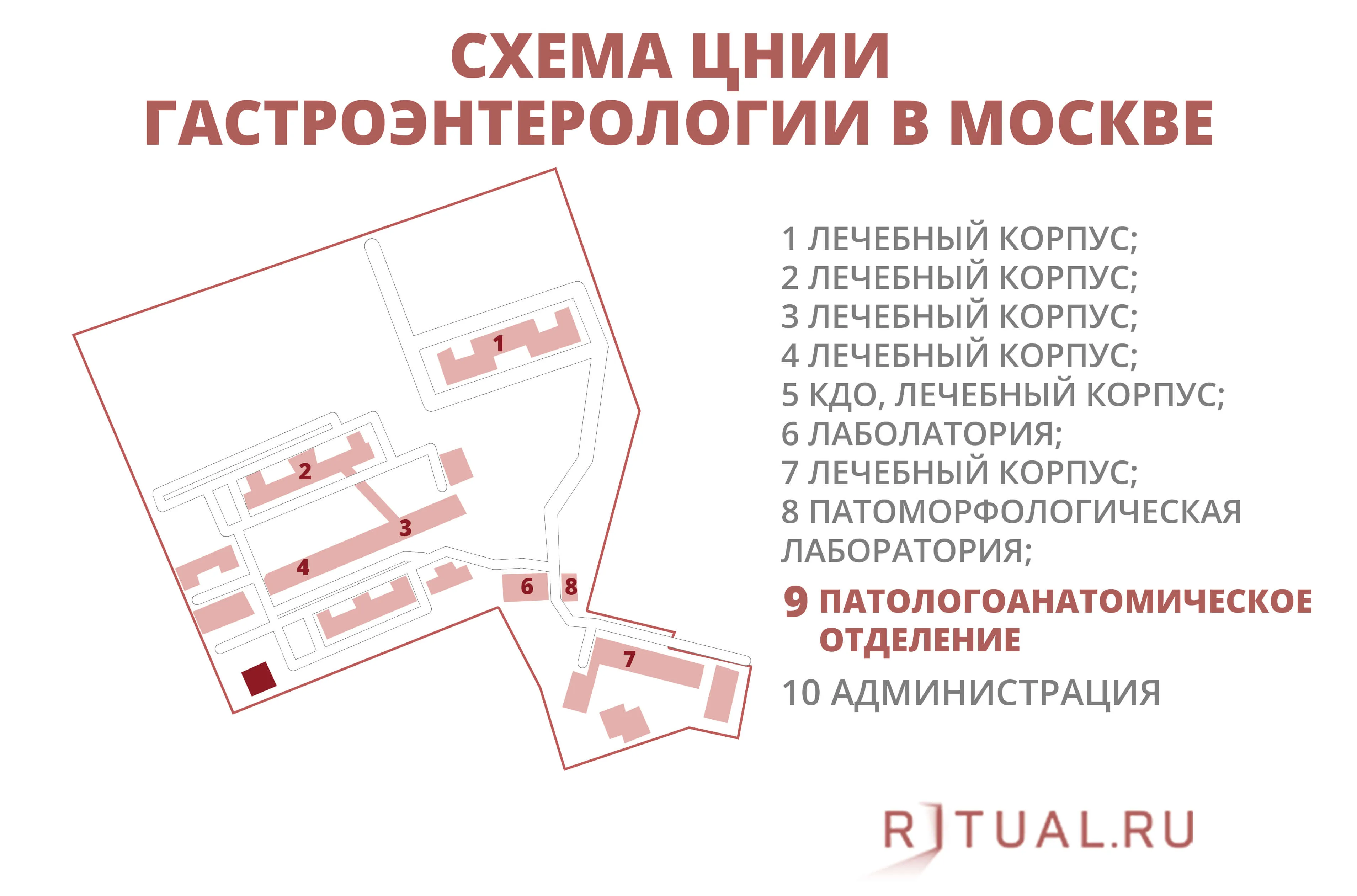 Откуда везут в морг Московского клинического научно-практического центра им. А.С. Логинова (ЦНИИ гастроэнтерологии)