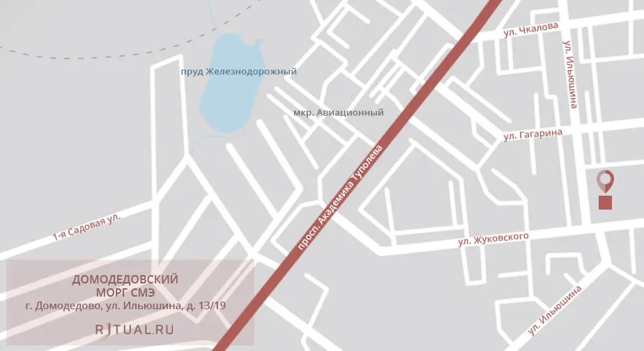 С МКАД (24-й км) — на Каширское ш. и трассу А-105. Через 18 км вправо, затем влево, на ул. Ильюшина, к моргу.