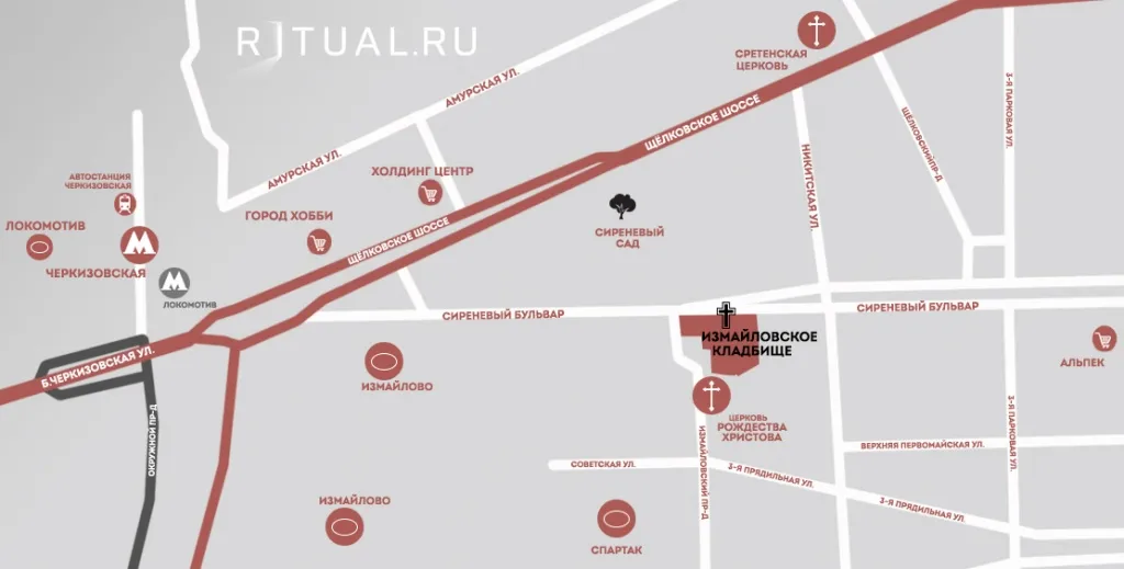 Как доехать до храма на Измайловском кладбище:
