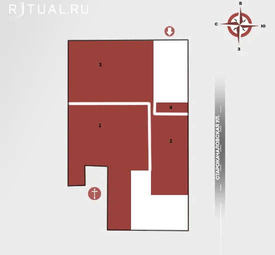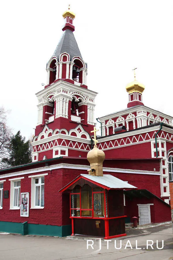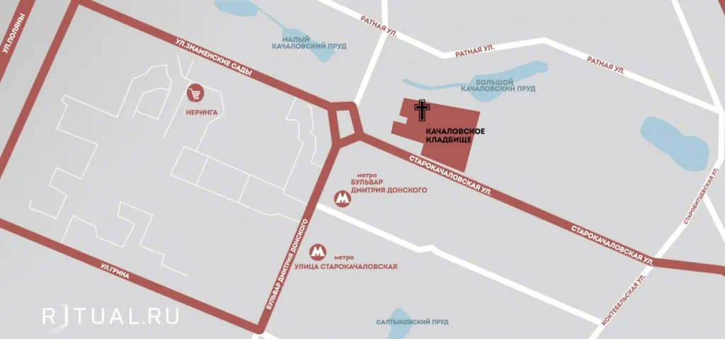 С МКАД (33-й км, внутренняя сторона) на ул. Коктебельскую, затем на Старокачаловскую. Через 700 м съезд в правую сторону, к кладбищу и храму.