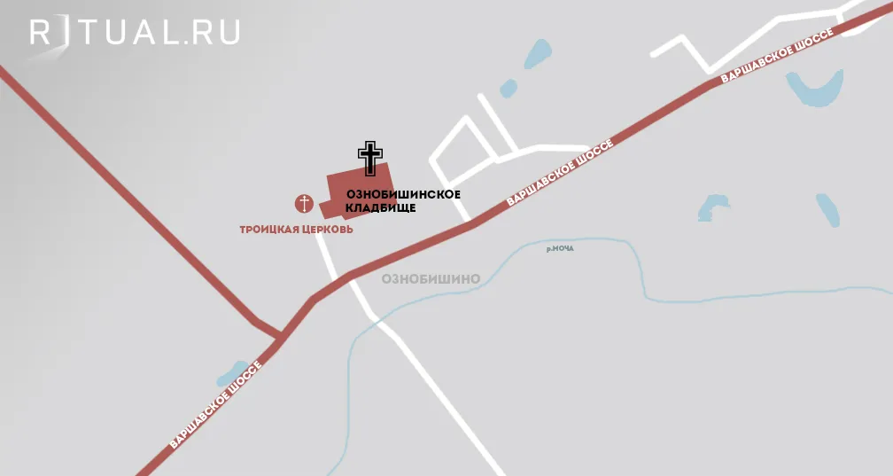 Адрес храма на кладбище Ознобишино: