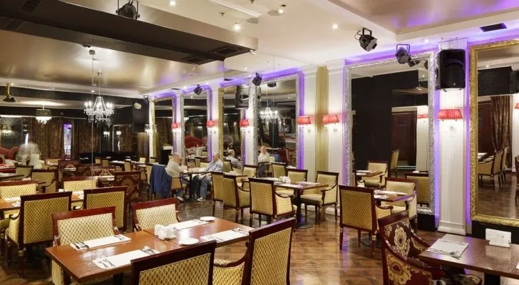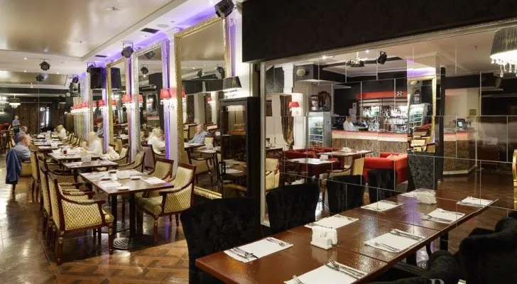 Ресторан «Беллиссима» - место с особой атмосферой, где гостям уютно и легко. Роскошный интерьер в классическом стиле. Большой выбор оригинальных блюд европейской и русской кухни. Высокопрофессиональное обслуживание. Есть возможность размещения в трёх отдельных залах от 30 до 80 человек.