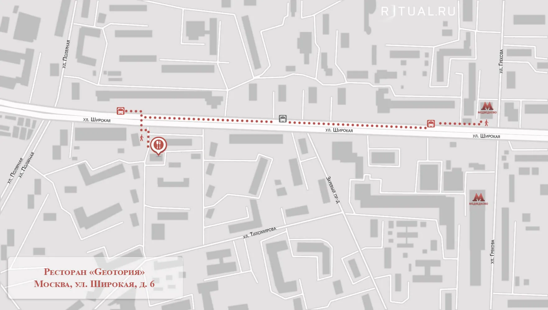 Ресторан «Geoтория» — удобное место для проведения поминок в Москве. Ритуальная служба Ritual.ru поможет в организации поминок в ресторане «Geoтория», который размещён на северо-востоке Москвы.